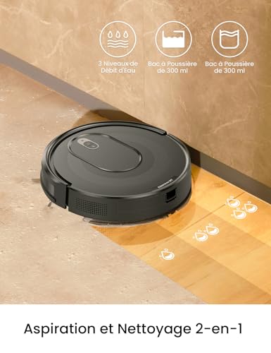 【Aspirateur et Laveur 2 en 1】Ce robot aspirateur laveur combine une aspiration puissante avec un lavage efficace. Il élimine la saleté, la poussière et les poils d’animaux tout en nettoyant simultanément les taches et les déversements. Que vous ayez des débris secs ou des salissures humides, cet aspirateur assure une expérience de nettoyage complète, laissant vos sols impeccables et rafraîchis en un seul passage.