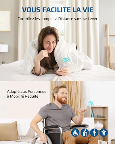 Installation Sans Recâblage : Connectez simplement le récepteur de l’interrupteur à télécommande à l’alimentation et à l’appareil à contrôler, et c’est tout ! Son format compact s’adapte à la plupart des boîtes d’encastrement et de jonction Longue Portée de 30 m : Le signal RF puissant traverse les murs, les portes et les fenêtres, permettant à cet interrupteur télécommandé de contrôler vos appareils jusqu’à 30 m, idéal pour les grandes pièces ou les endroits difficiles d’accès Pré-apparié et Extensible : Ce kit d’interrupteur sans fil est déjà apparié en usine, prêt à l’emploi ; vous pouvez ajouter d’autres récepteurs ou…