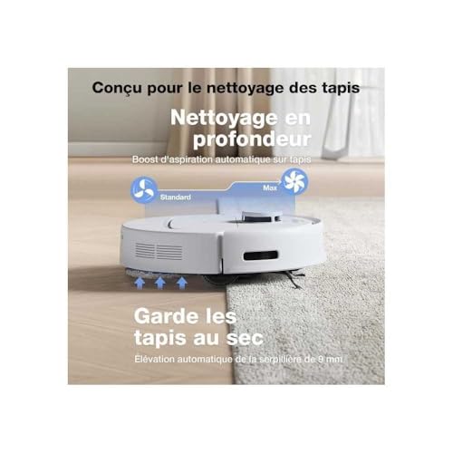 【Puissance d’aspiration de 10,000 Pa】Alimenté par un moteur avancé et une technologie de flux d’air, le DEEBOT N30 PRO OMNI dispose d’une puissante aspiration de 10 000 Pa qui nettoie en profondeur les surfaces, éliminant sans effort la saleté et les débris des parquets, des carreaux et des tapis. Associé à la technologie anti-enchevêtrement ZeroTangle 2.0, il assure un nettoyage complet et efficace tout en minimisant les enroulements de poils des humains et des animaux domestiques sur la brosse principale.