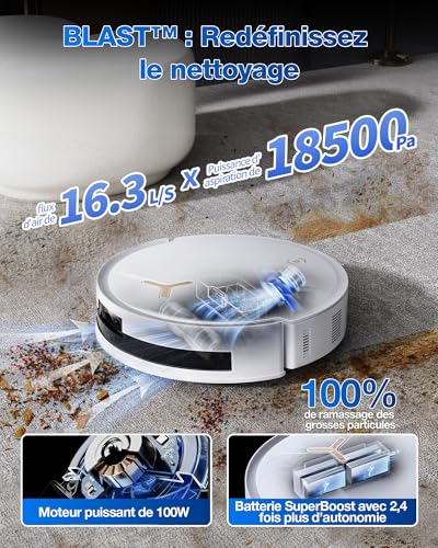 ECOVACS T50 Pro Omni Aspirateur Robot, 15000Pa amélioré par T30 Pro Omni