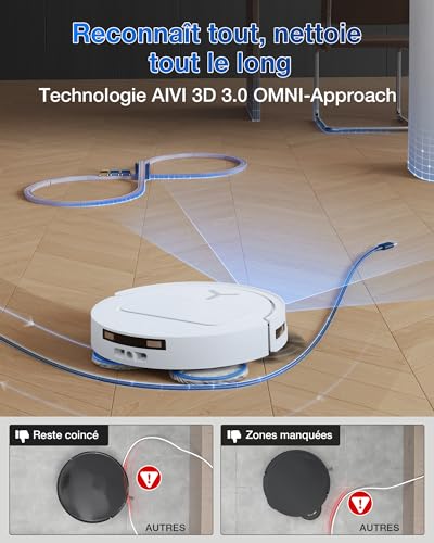 【Caméra 3D AIVI + Lumière de structure 3D】Le DEEBOT T50 PRO OMNI utilise la technologie AIVI 3D 3.0 OMNI-Approach. Elle permet au robot de reconnaître et d’identifier tous les obstacles en temps réel et d’utiliser leurs contours comme limites pour le nettoyage des bords.