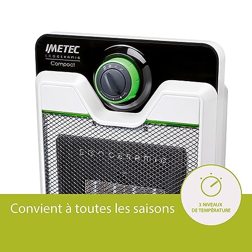 Imetec Eco Radiateur Soufflant Céramique, Chauffage électrique, Technologie Céramique, Faible Consommation d’Energie, Silencieux, 3 Niveaux de Température, Thermostat d’Ambiance