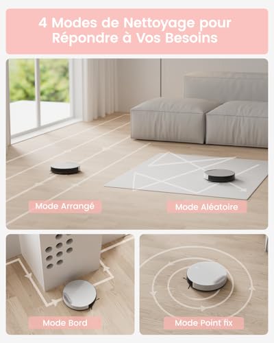 【Un Nettoyage Silencieux】: Avec le mode silencieux sélectionné, les robots aspirent jusqu’à 165 minutes sur les planchers de bois franc avec une aspiration puissante et constante mais un bruit de nettoyage de seulement 55 dB.