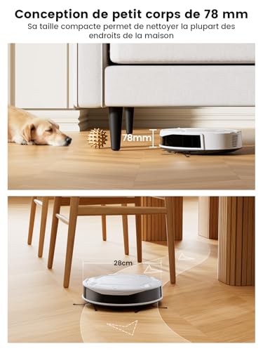 Design compact : le robot aspirateur LEFANT M210 Pro+ dispose d’un corps unifié de seulement 28 cm de diamètre et 7,8 cm de hauteur. Sa taille miniaturisée vous permet d’accéder facilement aux espaces restreints sous les lits, canapés et coins, évitant les bourrages tout en maximisant la couverture de nettoyage avec un minimum de pannes.