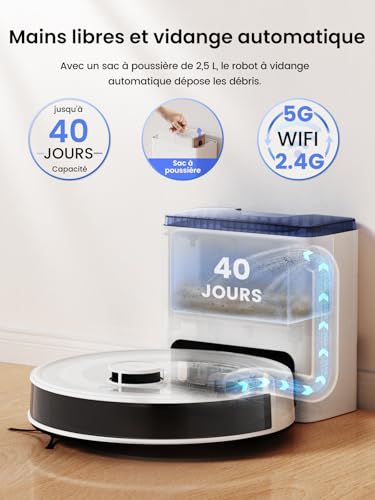 Lefant M2L Plus Robot Aspirateur Laveur 6000Pa avec Station Vidage Automatique Poussière,Navigation Laser avec Cartographie,Évitement d’obstacles PSD,130min,Idéal pour Poils d’animaux