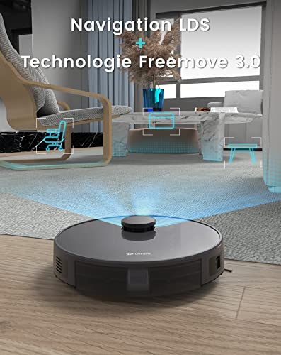 Lefant Robot Aspirateur Laveur 2 en 1 4000Pa,Navigation LiDAR, Cartographie Multi-étage,Zones Virtuelles, Connecté par Alexa/APP/WiFi,Idéal pour Poils d’animaux Tapis Sols Durs M1 Gris