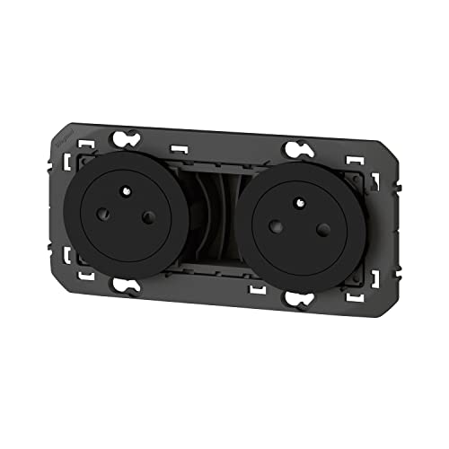 LEGRAND – Prise Double Murale 16A avec Terre dooxie Surface – Prise 2P + T Affleurante avec Fond Rétractable – Fabriqué En France – Noir