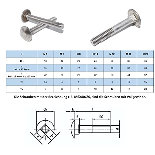 Lot de 6 boulons de carrosserie avec collet carré DIN 603 A2 en acier inoxydable