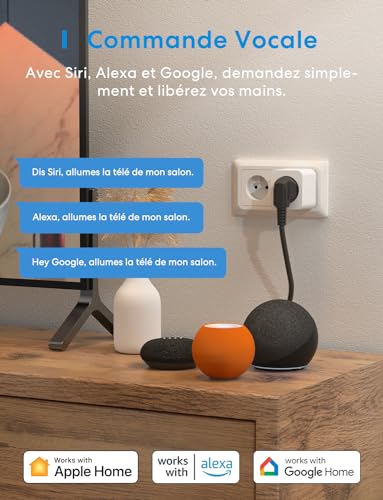 ⭐PRISE CONNECTÉE WIFI AVEC CONTRÔLE VOCAL: La prise intelligente fonctionne avec Amazon Alexa, Echo, Echo Dot, Google Assistant, Google Home et Google Nest, afin que vous pouvez contrôler directement vos appareils via une commande vocale. Tout est simple. La prise de courant Meross vous donne une expérience de mains libres.
