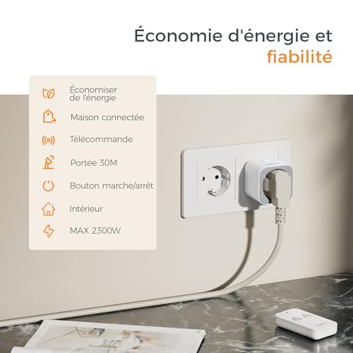 Portée RF de 30,5 M: portée jusqu’à 30,5 M, un signal RF puissant peut traverser le mur, la porte et la fenêtre pour contrôler rapidement l’appareil; prise telecommande convient aux personnes à mobilité réduite, comme les aînés et femmes enceintes Plug and Play: le prise télécommandée préprogrammé peut être utilisé directement sans couplage supplémentaire ; Boîtier à partir de prise avec interrupteur, alimentation par bouton ou télécommande ; simple et économique Pratique et peu encombrant: Avec le corps mini (4,7 x 4,7 x 4 cm), ce prise avec telecommande convient aux endroits étroits, difficile d’accès à la prise ; Par…
