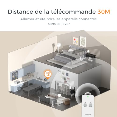 TESSAN Prise Télécommandée Programmable, Portée 30,5 M Prise Telecommande Sans Fil, Intérieures Prise avec Interrupteur, pour Décoration de Noël, Électroménager, Éclairage, 2300 W