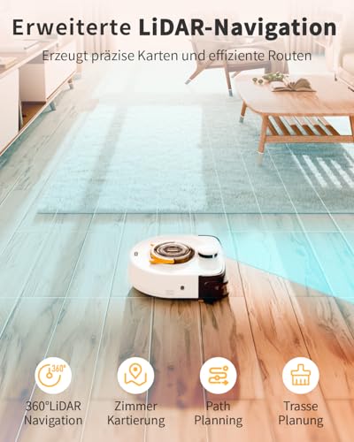 UBPET Aspirateur Robot 22000 Pa pour les Poils D’animaux sur les Tapis et Les Sols, Aspirateur Robot Cyclone, Robot Nettoyeur Automatique avec Navigation LiDAR, Contrôle WiFi/App, Auto-Chargement, V10